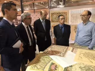 El representante del Gobierno central en el Principado se ha detenido en el stand que la Casa del Mapa, entidad dependiente del Instituto Geográfico Nacional (Ministerio de Fomento), tiene en la feria, y en el que pudo ver una muestra del amplio catálogo de este organismo que incluye mapas topográficos de toda España a escala 1:50.000 y 1:25.000, guías de parques naturales, mapas en relieve, libros de astronomía y del Camino de Santiago, puzles, mapas históricos de Asturias, de otras regiones, de España y del resto del mundo.