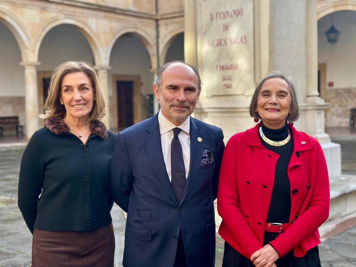 La nueva vicerrectora de Extensión Universitaria y Proyección Cultural de la Universidad de Oviedo , Marta Mateo; el rector, Ignacio Villaverde; y la vicerrectora saliente de este departamento, María Pilar García. - EUROPA PRESS