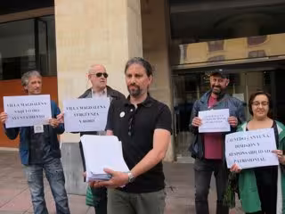 El portavoz del movimiento Daniel La Torre, ha explicado ante los medios que la ciudadanía de Oviedo no debería "pagar" por la retasación del palacete, por lo que las firmas presentadas hoy también exigen responsabilidad patrimonial por parte de los tres dirigentes del PP.