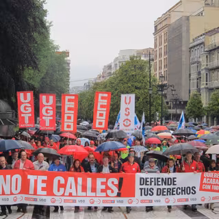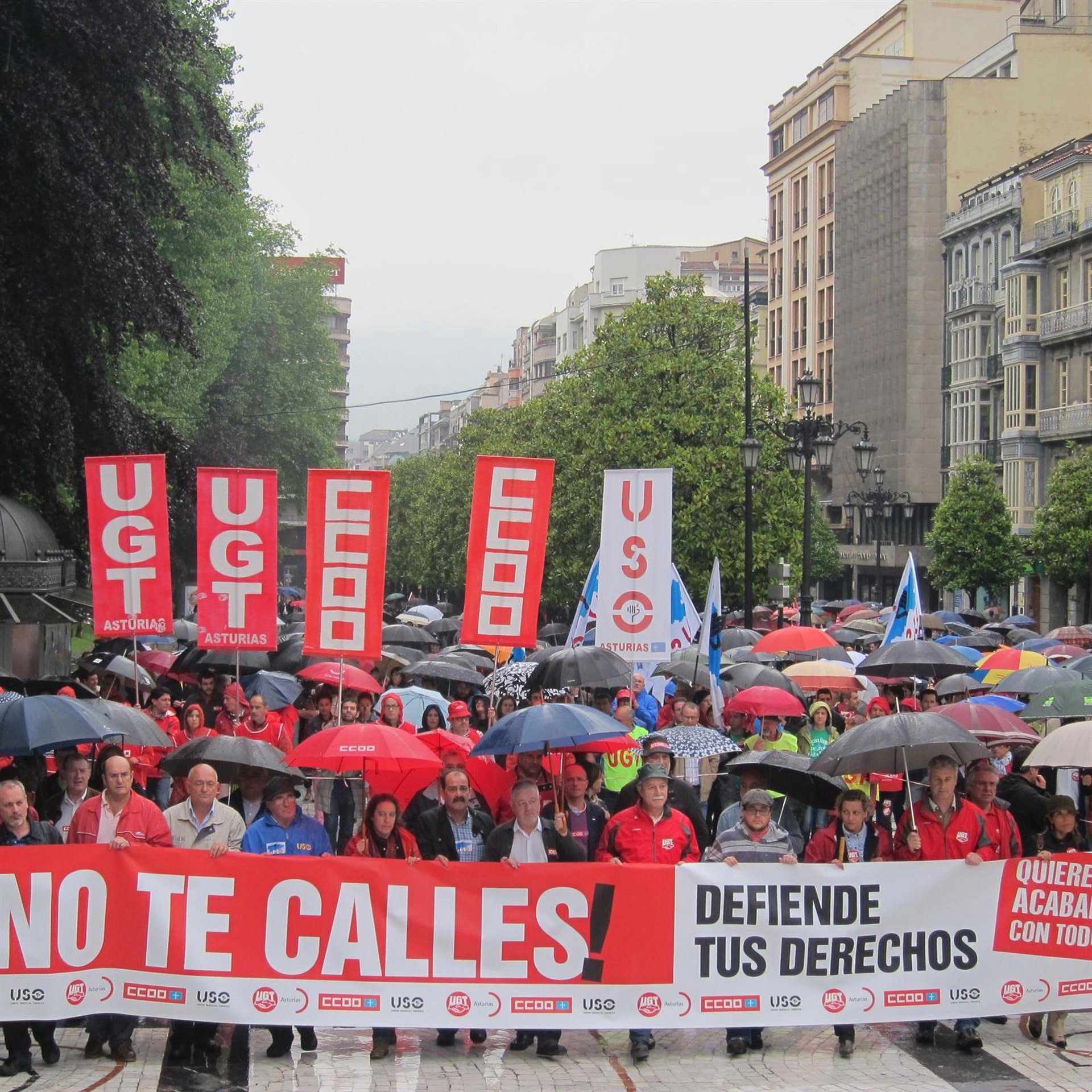 El centro de Oviedo ha acogido este miércoles, bajo la lluvia, una manifestación contra la reforma laboral aprobada por el Gobierno de Mariano Rajoy, que también se celebra en el resto de capitales de provincia del país. La marcha ha contado con más de 3.000 personas, según fuentes policiales consultadas por Europa Press.