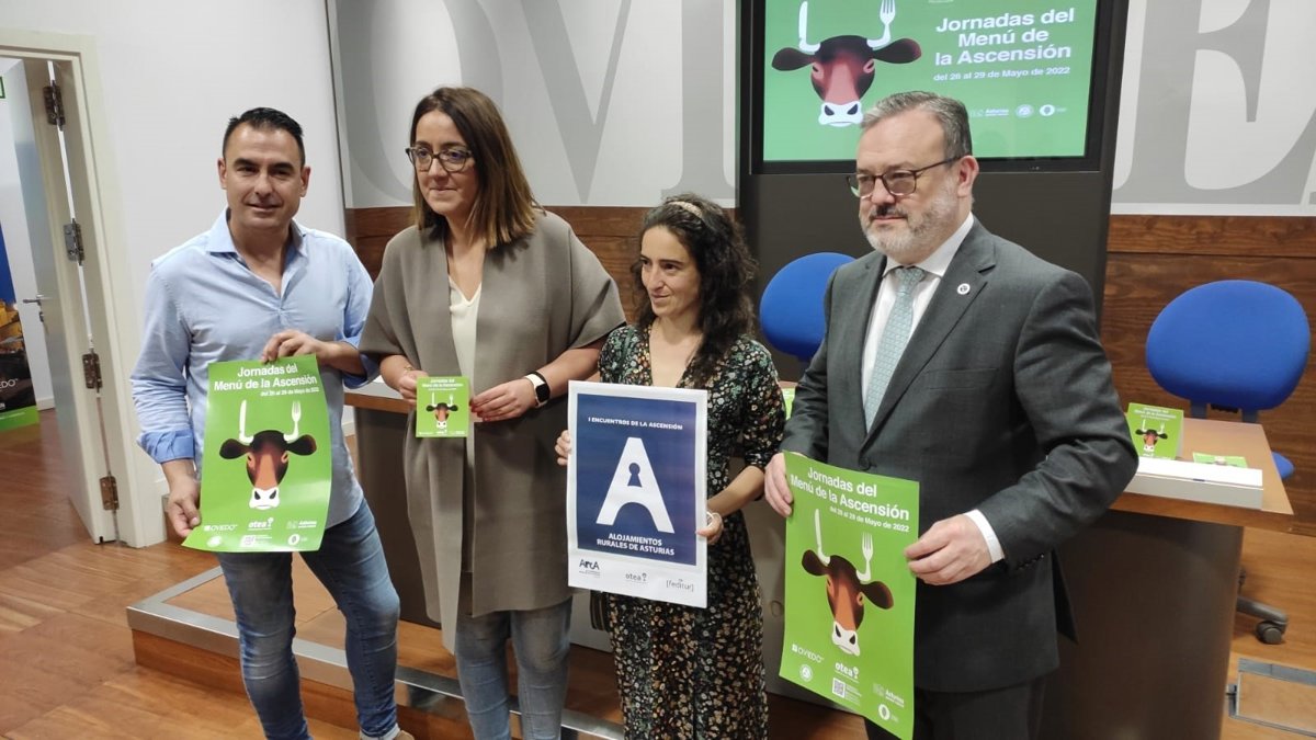 Representantes del Ayuntamiento, de la patronal hostelera Otea y de la Asociación de Alojamientos Rurales de Asturias han presentado este jueves parte del programa de actividades complementarias a la Feria de la Ascensión.
