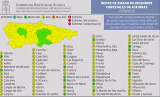 De este modo, la mayor parte del territorio asturiano cuenta con riesgo "alto" y únicamente 15 estarán en riesgo "moderado".
