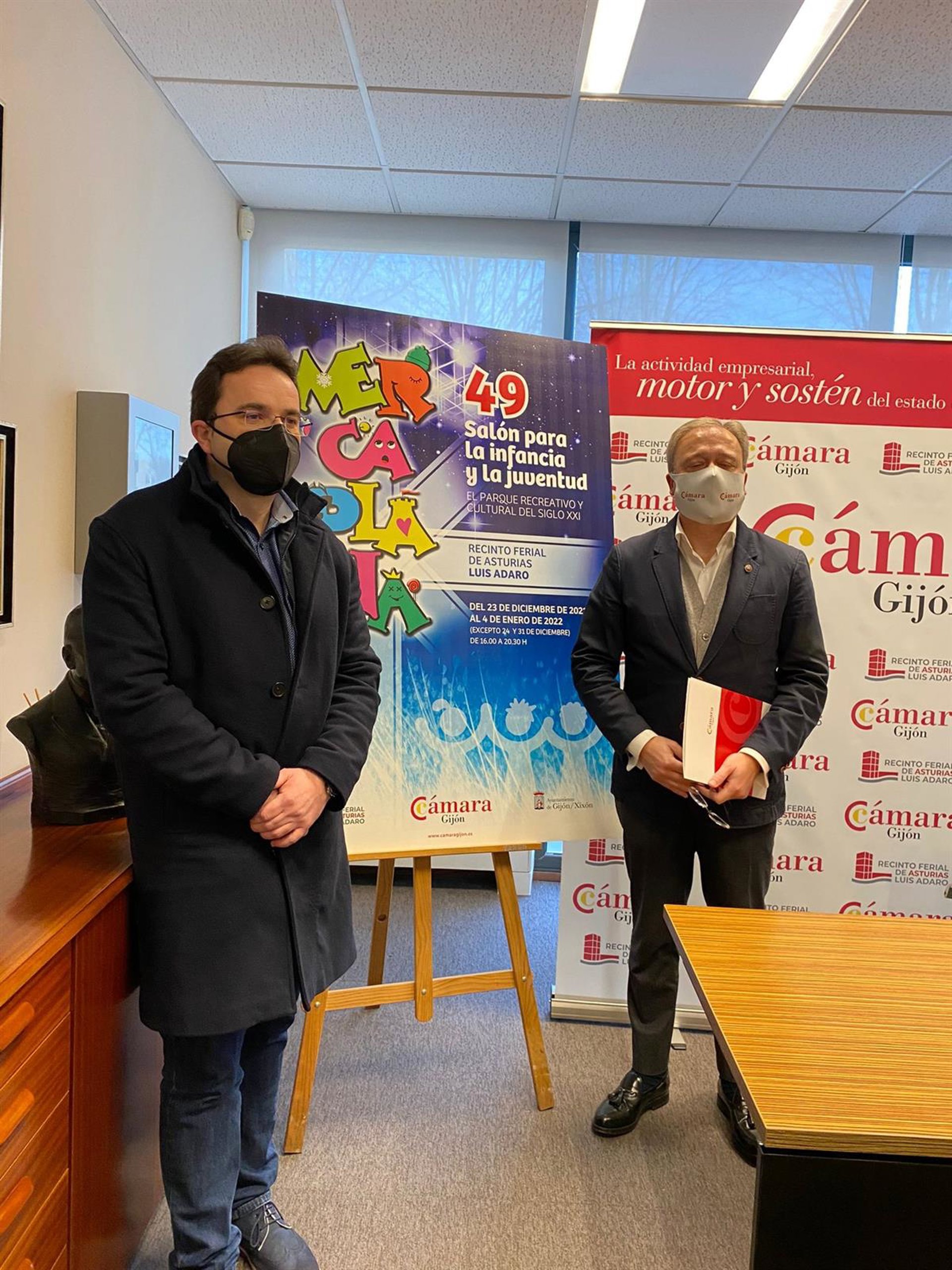El secretario general de la Cámara de Comercio de Gijón, Álvaro Alonso (a la derecha), y el concejal de Cultura de Gijón, Manuel Ángel Vallina, durante la presentación de la 49 edición del Salón para la Infancia y la Juventud (Mercaplana) - CÁMARA DE COMERCIO DE GIJÓN