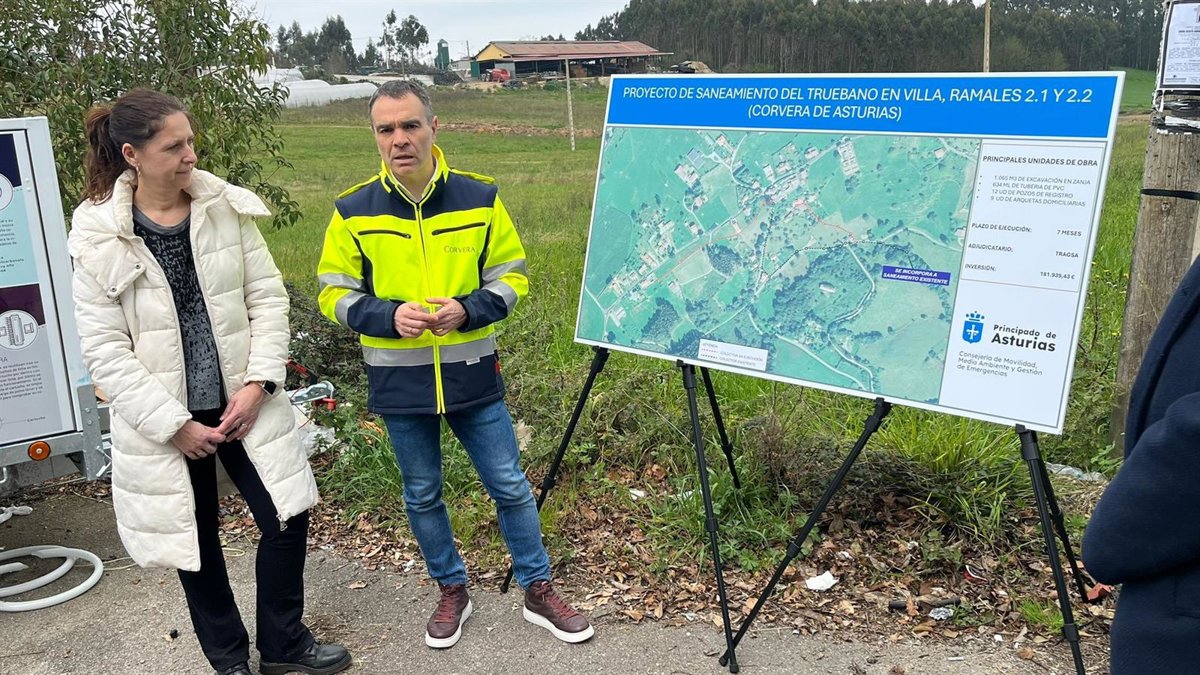 La Consejería de Movilidad, Medio Ambiente y Gestión de Emergencias ejecuta la ampliación del sistema de saneamiento de El Truébanu, en Corvera, que supone una inversión de 181.939 euros. La directora general del Agua, Vanesa Mateo, y el alcalde del concejo, Iván Fernández, han visitado hoy los trabajos, que beneficiarán a 24 habitantes de la localidad.