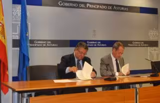 El consejero de Medio Rural y Pesca del Principado, Aurelio Martín, ha suscrito este martes un convenio con el presidente de Hunosa, Juan Ramón García Secades, para desarrollar actuaciones de repoblación de 3.000 hectáreas de los terrenos dañados por la actividad minera, con 1,2 millones de árboles.