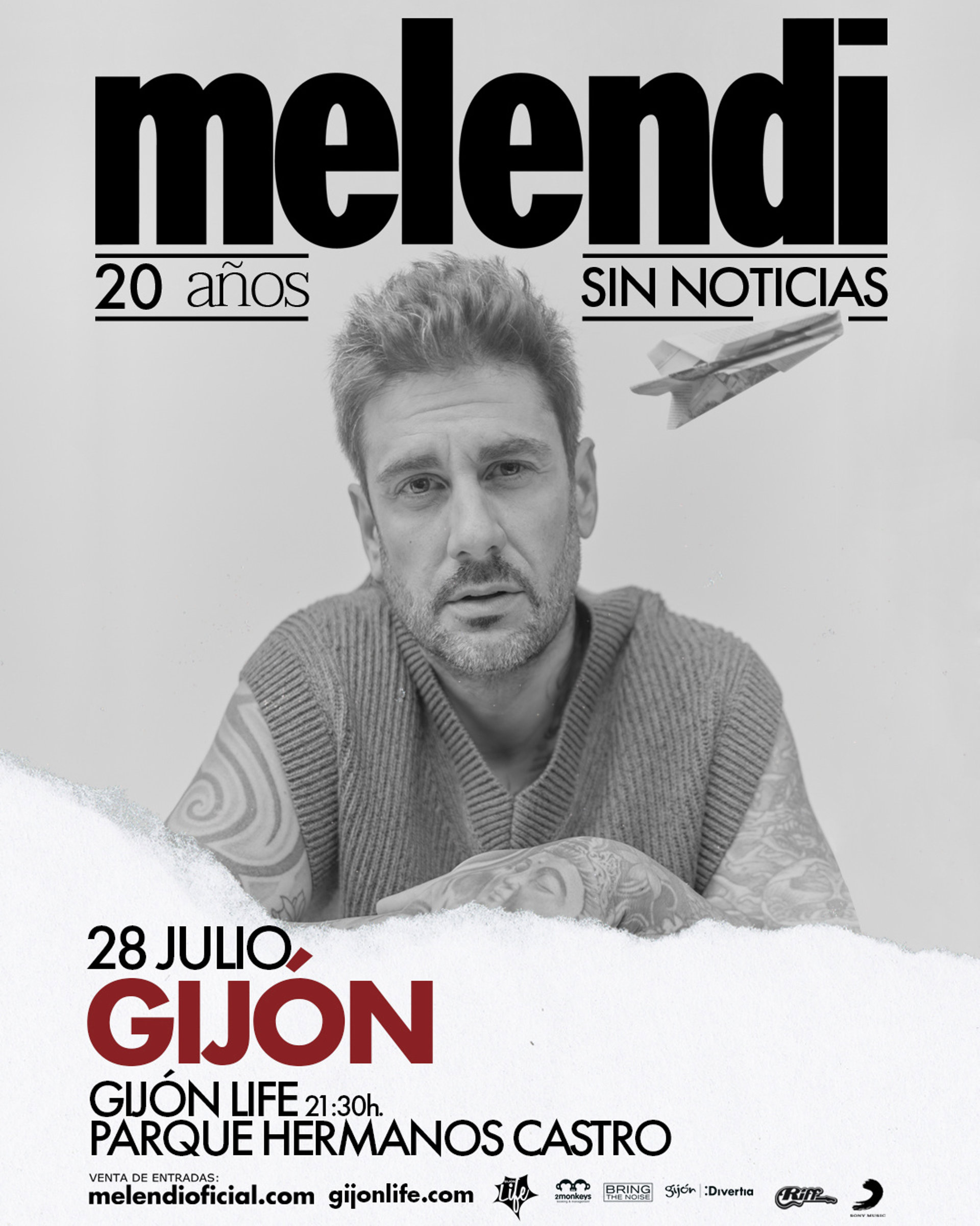Archivo - Cartel anunciador del concierto de Melendi en el marco del Gijón Life, dentro de su gira '20 años sin noticias'. - GIJÓN LIFE - Archivo