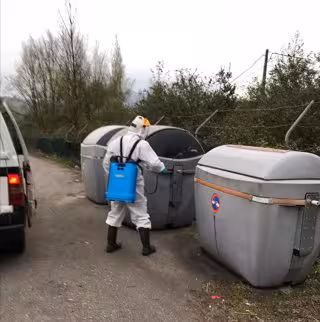 El Ayuntamiento de Mieres, dentro de las acciones puestas en marcha desde el inicio de la emergencia sanitaria provocada por el nuevo coronavirus, el servicio municipal de limpieza y Protección Civil está trabajando estos días en la limpieza y desinfección de contenedores, marquesinas y demás mobiliario urbano, tanto en la zona rural como en el casco urbano.