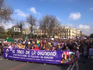 En concreto, la convocatoria ha contado con la asistencia de más de 150 asociaciones de mujeres y organizaciones sociales, ha tenido como nombre 'Tren de la dignidad' y como lema 'Ni un paso atrás'. Ha partido alrededor de las 11,30 horas desde la Avenida Menéndez Pelayo, pasando por Jardines de Murillo hasta llegar al Palacio de San Telmo, sede del Gobierno andaluz.