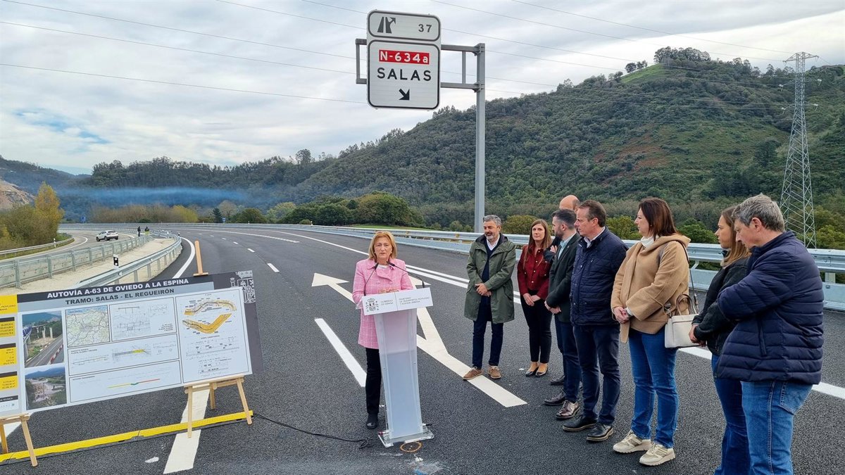 La delegada del Gobierno en Asturias, Delia Losa, ha visitado el tramo de cinco kilómetros entre Salas y El Regueirón de la A-63 que este lunes se ha puesto en servicio. Las obras de adaptación de la segunda calzada entre los puntos kilométricos 0.600 y 5.490 han supuesto una inversión de 8,5 millones de euros.