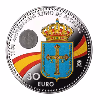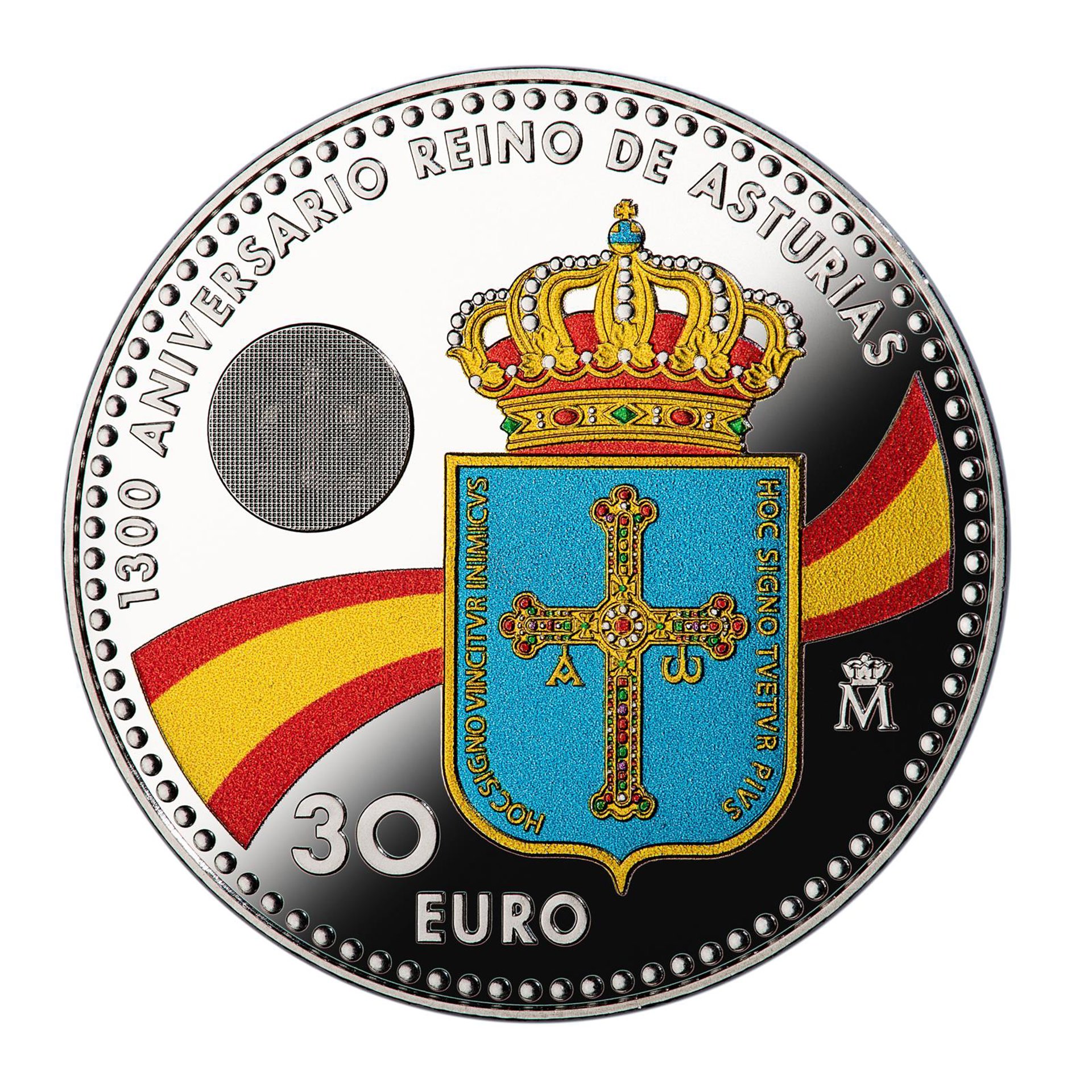 La Fábrica nacional de Moneda y Timbre-Real Casa de la Moneda ha preparado la emisión de una moneda de colección de 30 euros dedicada a la celebración del 1.300 aniversario de la creación del Reino de Asturias. La moneda estará a disposición del público en todas las entidades de crédito a partir del lunes 22 de octubre de 2018.