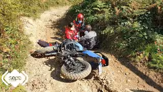 Emergencias atienden al motorista herido en una pierna tras sufrir una caída en una senda forestal en Aller. - SEPA