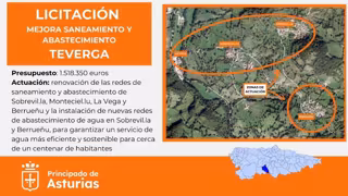 La Consejería de Movilidad, Medio Ambiente y Gestión de Emergencias ha licitado por 1.518.350 euros la mejora de los sistemas de saneamiento y abastecimiento de Berrueñu y Sobrevil.la, en Teverga. Las empresas podrán presentar ofertas hasta el 10 de marzo.