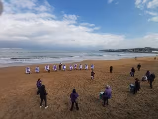 En Gijón ha sido en la playa de San Lorenzo en una jornada en la que se han centrado en el lema de este año, 'Esenciales', para dar visibilidad a todas las mujeres que durante la crisis social y económica provocada por la pandemia del COVID-19 han visto agravada su situación.