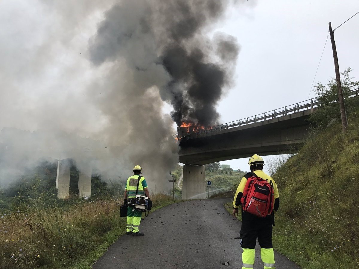 El conductor de un camión ha fallecido este lunes en Cantabria, al caer al vacío por el puente de Ontón tras incendiarse la cabina del vehículo.