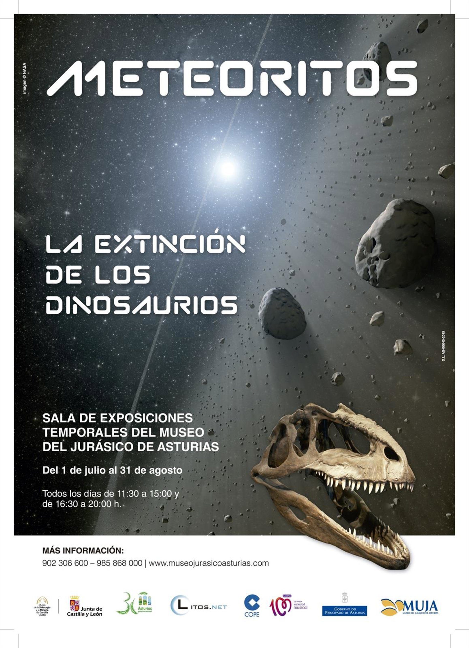 El Museo del Jurásico de Asturias (MUJA) inaugura la exposición 'Meteoritos, la extinción de los dinosaurios' este miércoles 1 de julio. La muestra se podrá visitar hasta el 31 de agosto, todos los días de 11.30 a 15.00 y de 16.30 a 20.00 horas.