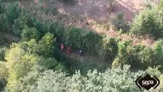 El dispositivo de búsqueda comenzó el rastreo por la localidad. Fue el grupo de rescate, a bordo del helicóptero, quien localizó a la afectada desde el aire. Ésta se encontraba en un lugar de muy difícil acceso, con arbolado y mucho matorral y zarzas. Tras indicar al dispositivo terrestre donde se encontraba la mujer afectada, se comenzó a trabajar para poder llegar hasta la misma. Tras abrir camino entre los matorrales, los efectivos alcanzaron a la afectada que estaba magullada.