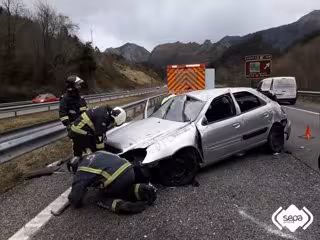 La afectada tuvo que ser excarcelada del interior del turismo por efectivos de Bomberos del Servicio de Emergencias del Principado de Asturias (SEPA) con base en el parque de Cangas de Onís. Los bomberos evacuaron a la mujer inmovilizada, con collarín y férula de extricación espinal, por un lateral del turismo con ayuda de la tabla de rescate.
