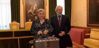 La alcaldesa de Gijón, Ana González, y el presidente de la SIBI, Marcelo Palacios, durante la presentación del XI Congreso Internacional de Bioética - EUROPA PRESS