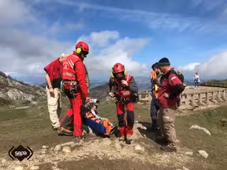 El Grupo de Rescate de Bomberos del Servicio de Emergencias del Principado de Asturias (SEPA), a bordo del helicóptero medicalizado del organismo autónomo, ha trasladado al Hospital de Arriondas a una mujer, de 70 años, que resultó herida en una pierna cuando se encontraba en el mirador de Entrelagos, en Cangas de Onís.