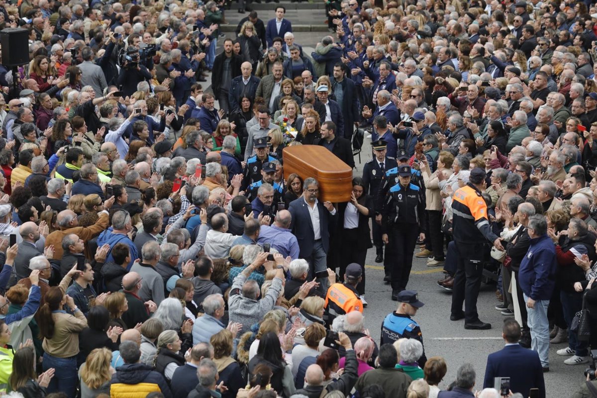 El féretro del regidor mierense recorrió la plaza entre los aplausos de los asistentes y mientras sonaban las sirenas similares a las que marcaban la entrada y salida de los mineros en las minas.