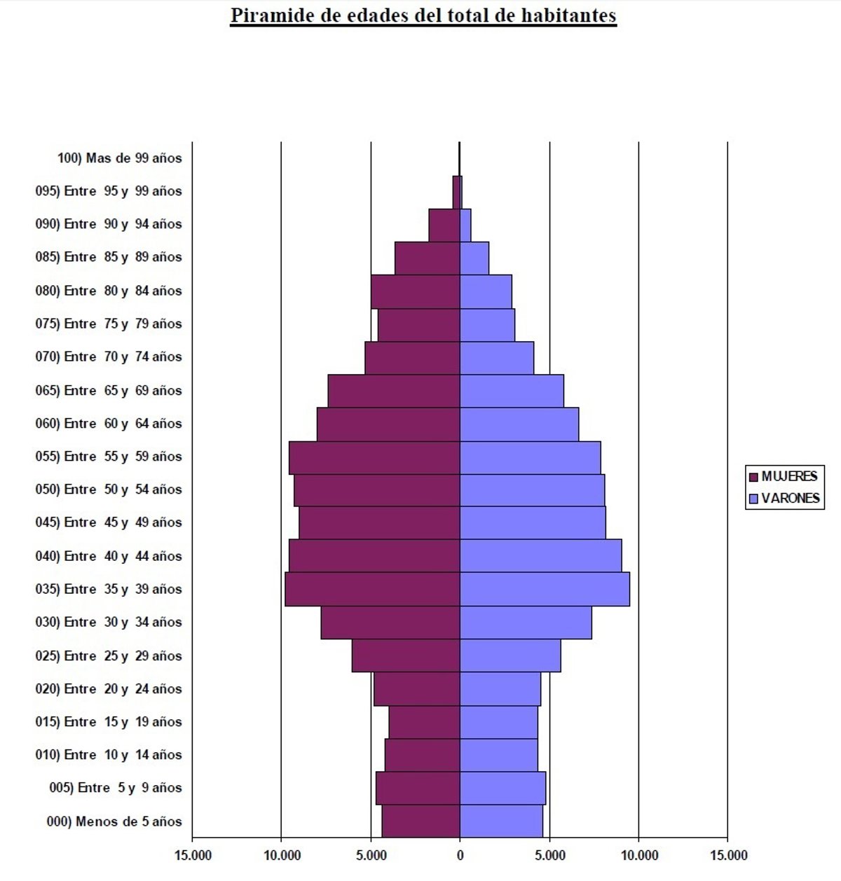 Atendiendo a los datos recogidos por Europa Press, los habitantes del municipio se organizan en torno a una pirámide regresiva en la que la mayor parte de la población se concentra en los rangos de edades entre 35 y 65 años --104.495 del total--, dando como resultado una población envejecida.