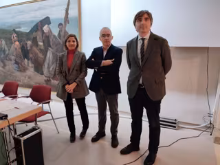 El director del Museo de Bellas Artes de Asturias, Alfonso Palacio, junto a la responsable de Educación, Cristina Heredia, y el director general de Política Llingüística del Principado de Asturias, Antón García. - EUROPA PRESS