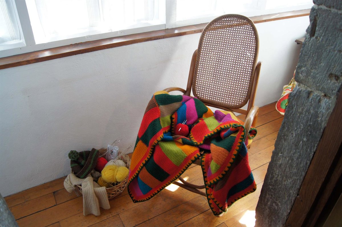 El segundo subespacio, esta dedicado a las labores de punto (calceta y ganchillo) y a las mujeres de más edad de la casa. El objeto principal esta representado por una de aquellas y añoradas mecedoras de madera y enea, donde se intenta rememorar el espacio que ocupaban nuestas abuelas mientras contaban punto a punto, cantaban viejos cantares, contaban historias del pasado o se quedaban medio adormiladas al calor del sol de media tarde.