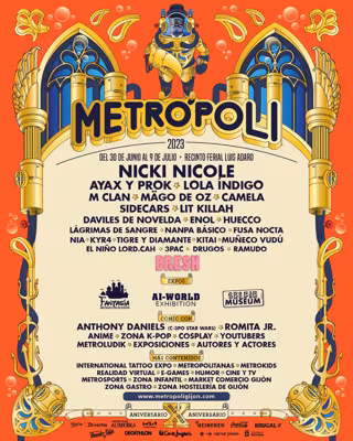 Cabe recordar que ya se había anunciado la presencia en el escenario de Metrópoli de la cantante Lola Índigo, la banda Mago de Oz, el artista de flamenco y rap Daviles de Novelda, Camela, Sidecars, la aspirante a Eurovisión en el Benidorm Fest Fusa Nocta, Huecco, Nanpa Básico, los asturianos Tigre y Diamante y Lágrimas de Sangre.