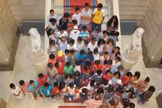 Unos 65 niños saharahuis, de los 326 que están en Asturias estos días procedentes de los campamentos de refugiados de Tinduf dentro del programa 'Vacaciones en Paz', han visitado la Junta General del Principado de Asturias (JGPA), donde han sido recibidos por el presidente de la Cámara, Fernando Goñi.