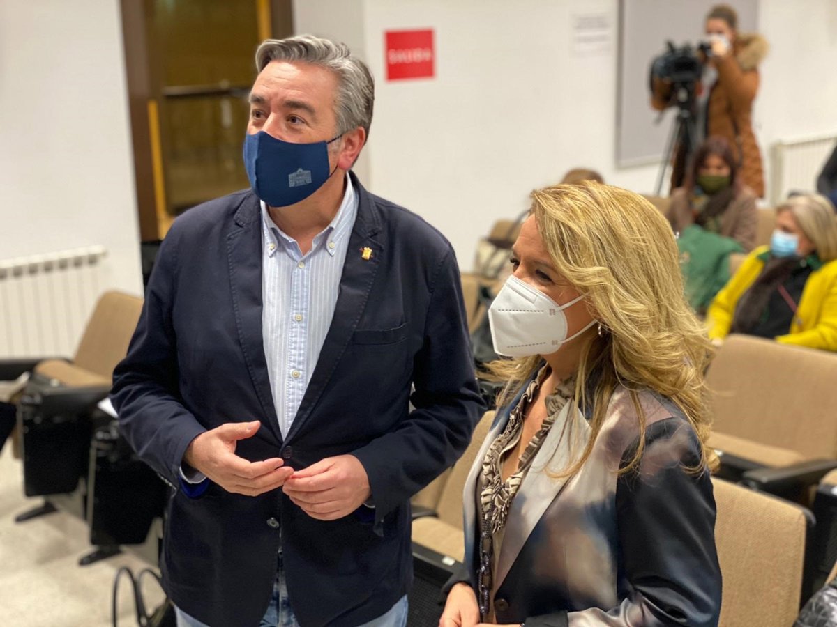La presidenta del PP de Asturias, Teresa Mallada, y el presidente del PP de Gijón y diputado en la Junta, Pablo González, antes de participar en la Junta Local del partido en la ciudad. - PP DE ASTURIAS