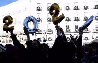 Unos globos con los números de 2020, en las pruebas para las Campanadas 2019 en la Puerta del Sol de Madrid (España), a 30 de diciembre de 2019. - Eduardo Parra - Europa Press