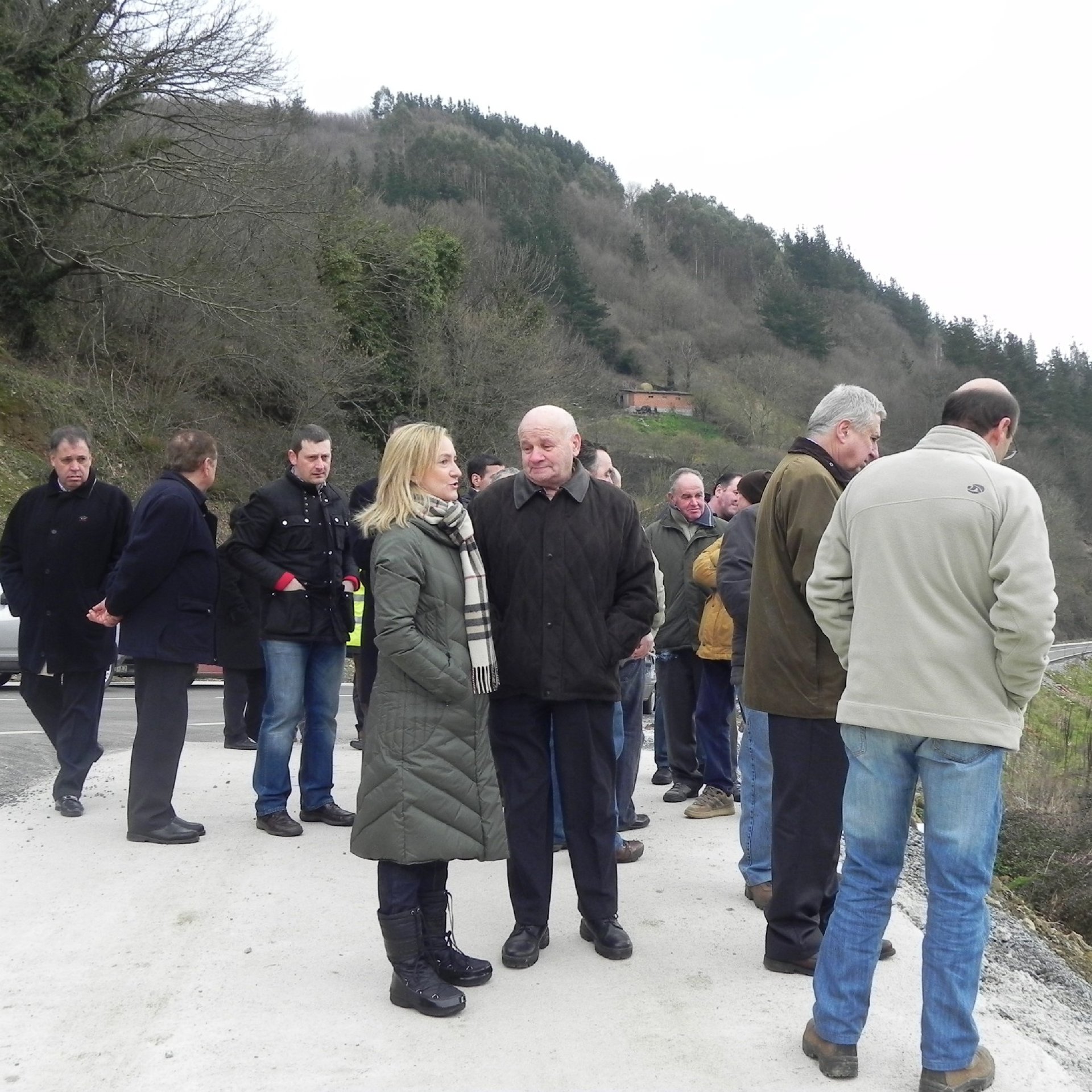 La consejera de Fomento, Ordenación del Territorio y Medio Ambiente, Isabel Marqués, y los alcaldes de Tineo, Marcos Líndez, y el de Allande, José Antonio Mesa, se desplazaron esta mañana hasta la localidad tinetense de Bárcena del Monasterio, desde donde recorrieron la vía que comunica ambos concejos.