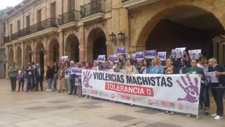 La Plaza de la Constitución, en Oviedo, ha vuelto a ser este martes escenario de una nueva concentración contra el "imparable terrorismo machista que asola día a día a las mujeres".