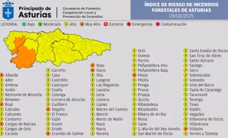 En concreto, los municipios que estarán con ese riego 'muy alto' son los de Allande, Boal, Cangas del Narcea, Degaña, Grandas de Salime, Ibias, Illano, Pesoz y Villayón. En el resto de Asturias el índice de riesgo de incendios forestales se mantiene en el nivel 'alto'.