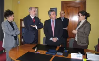 Belén Fernández y el secretario general de la Gerencia de Infraestructuras y Equipamientos de Seguridad del Estado (GIESE), el general José Hurtado Quero, han suscrito la minuta de recepción del edificio en la notaría de La Felguera. Por parte de Sogepsa ha firmado también su director gerente, José María Quirós, y el director general de Infraestructuras del Principado y consejero de la sociedad, Juan Fernández Pereiro.