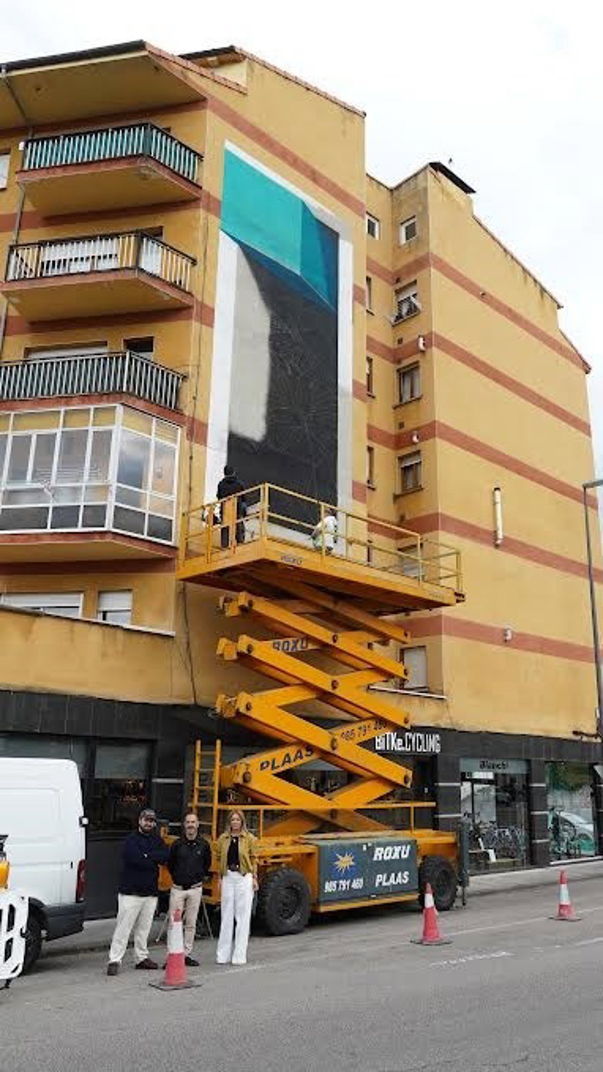 El alcalde de Siero, Ángel García, y la concejala de Educación, Juventud e Igualdad, Eva Iglesias, al inicio de las labores de pintura del tercer mural del programa Muralia 2025. En esta ocasión, se realiza en la fachada del edificio Cuatro Vías, ubicado en la N-634 en El Berrón. Los encargados de realizar esta obra es la Crew de artistas Nikita 5.7, que plasmarán un tigre selvático en 3D. La actuación cuenta con un plazo de ejecución de diez días aproximadamente.