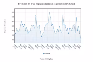 El descenso ocurrido en Asturias es el mayor por comunidades autónomas, seguido por el descenso en la creación de empresas de Navarra (-29,8%), y Extremadura (-23,7%).