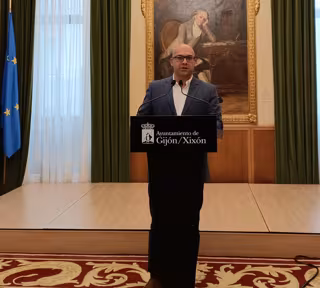 El portavoz de la Junta de Gobierno en el Ayuntamiento de Gijón, Jesús Martínez Salvador (Foro) en rueda de prena en el Consistorio gijonés. - EUROPA PRESS