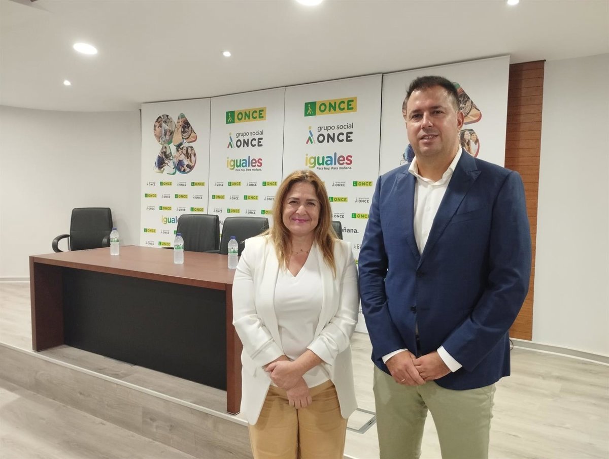 La delegada de la ONCE en Asturias, Yobanka Cuervo, y por el vicepresidente del Consejo Territorial, Diego García. - EUROPA PRESS.