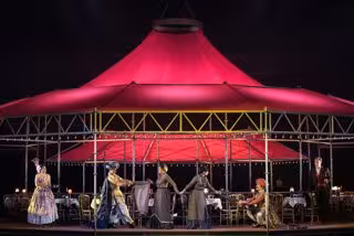 Joan Anton Rechi, que debuta en la Ópera de Oviedo y en su primer 'Così fan tutte', ha creado un espectáculo cuya puesta en escena se inspira en el Cabaret Sauvage y la estética de los espacios que reflejan los cuadros de Toulouse Lautrec.