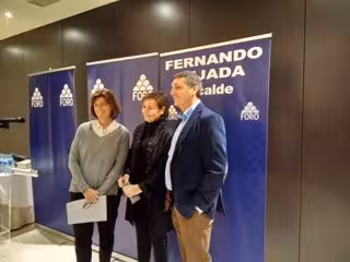 Fernando Tejada ha estado flanqueado por la presidenta de Foro Asturias y candidata a la presidencia del Principado, Carmen Moriyón, y por la presidenta de Foro en Oviedo, Carolina Morilla.
