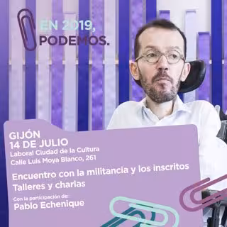 El secretario de Organización y Programa de Podemos, Pablo Echenique, participa este sábado en Gijón en el encuentro de formación militante 'Ser más y mejores para ganar un país'. Se trata de la segunda parada de una ruta que ya ha pasado por Sevilla y que tiene previsto llegar próximamente a Tarragona.