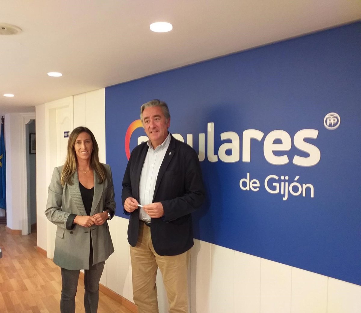 Archivo - El presidente del PP en Gijón, Pablo González, y la portavoz local del PP, Ángela Pumariega, en la sede local del PP gijonés - EUROPA PRESS - Archivo