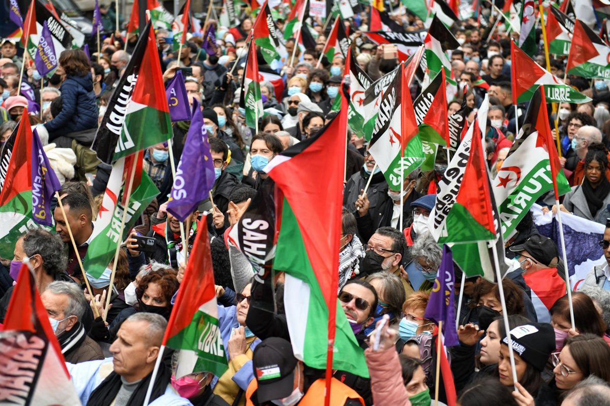 Varias personas, con banderas saharauis, participan en una manifestación - Fernando Sánchez - Europa Press