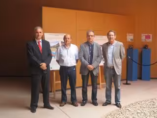 El director general de Patrimonio Cultural del Principado, José Adolfo Rodríguez Asensio; el concejal del Ayuntamiento de Teverga, Santiago Fernández Álvarez; el director del Centro Asociado de la UNED en Asturias, Mario Menéndez; y el director de la zona de Oviedo de Cajastur, Julio Fernández, han inaugurado este viernes la exposición situada en el espacio de la Galería del equipamiento tevergano.