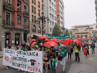 El Movimiento Social por la Escuela Pública de Asturias ha recorrido este sábado el centro de Oviedo en manifestación para exigir al Gobierno del Estado que no recorte 3.500 millones en educación y que elimine los conciertos educativos con centros privados, además de que no ejecute diversas medidas en el sector, tales como el aumento de tasas universitarias, de ratios de alumnos y de jornadas laborales del profesorado.