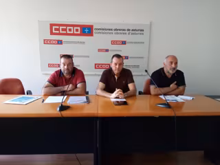 El responsable de política municipal del PCPE, Rubén Baizán, y el concejal en Degaña José Antonio Álvarez han ofrecido una rueda de prensa en la sede de CCOO de Asturias en la que han insistido en la necesidad de un sistema energético "de carácter público".