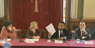Previamente al conferenciante la presidenta del Colegio de Periodistas de Asturias y de la Asociación de la Prensa de Oviedo, Bárbara Alonso, hacía un triple llamamiento: "a los periodistas, para que seamos militantes comprometidos en el ejercicio digno de nuestra profesión. A los partidos políticos, para acabar con la crispación y la utilización de la prensa como mero vehículo de transmisión. Y a la ciudadanía, a quienes nos debemos para que apuesten por la información de calidad contrastada, verificada, elaborada por periodistas".