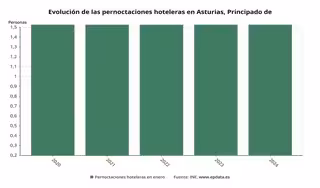 Las pernoctaciones en establecimientos hoteleros en Asturias aumentaron un 17,62% en enero en comparación con el mismo mes del año anterior hasta sumar un total de 152.797 pernoctaciones y encadena cinco meses de crecimiento, según los datos publicados por el Instituto Nacional de Estadística (INE).