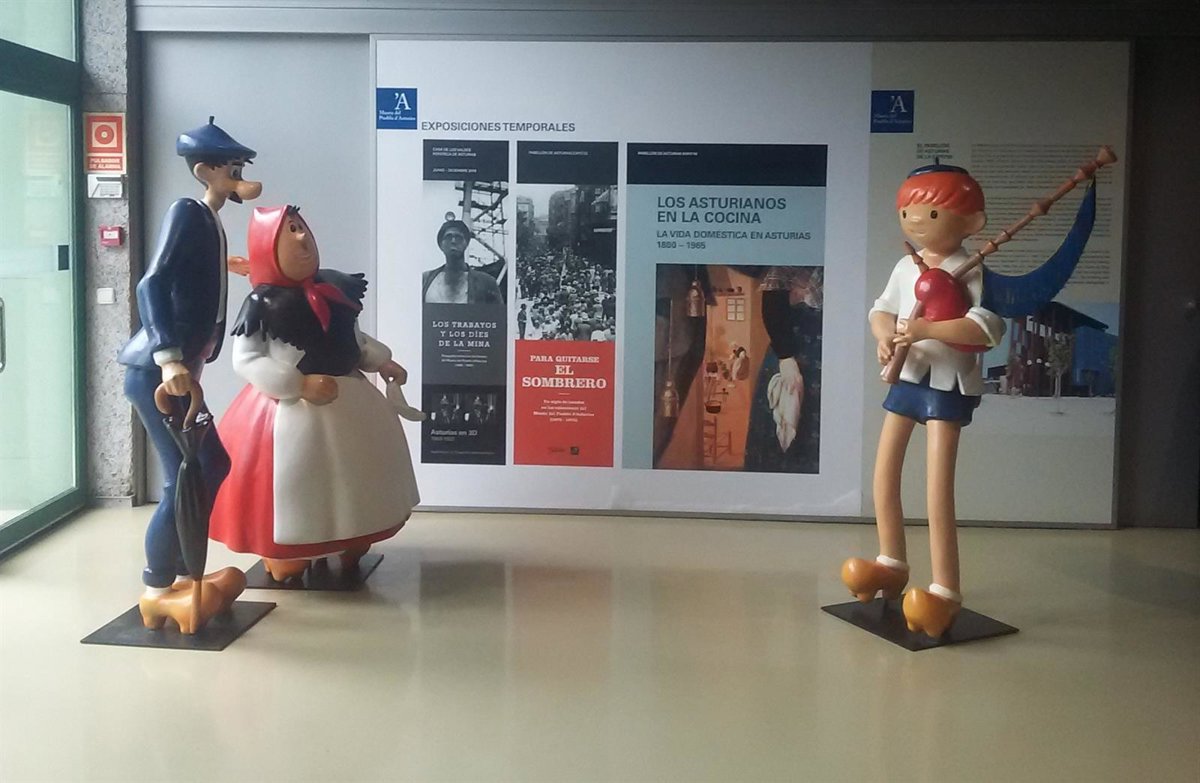 El Muséu pretende mantener hasta septiembre ahí las figuras de tamaño natural para animar al público a acudir al centro y realizarse fotografías con los personajes, considerados iconos de la cultura asturiana.